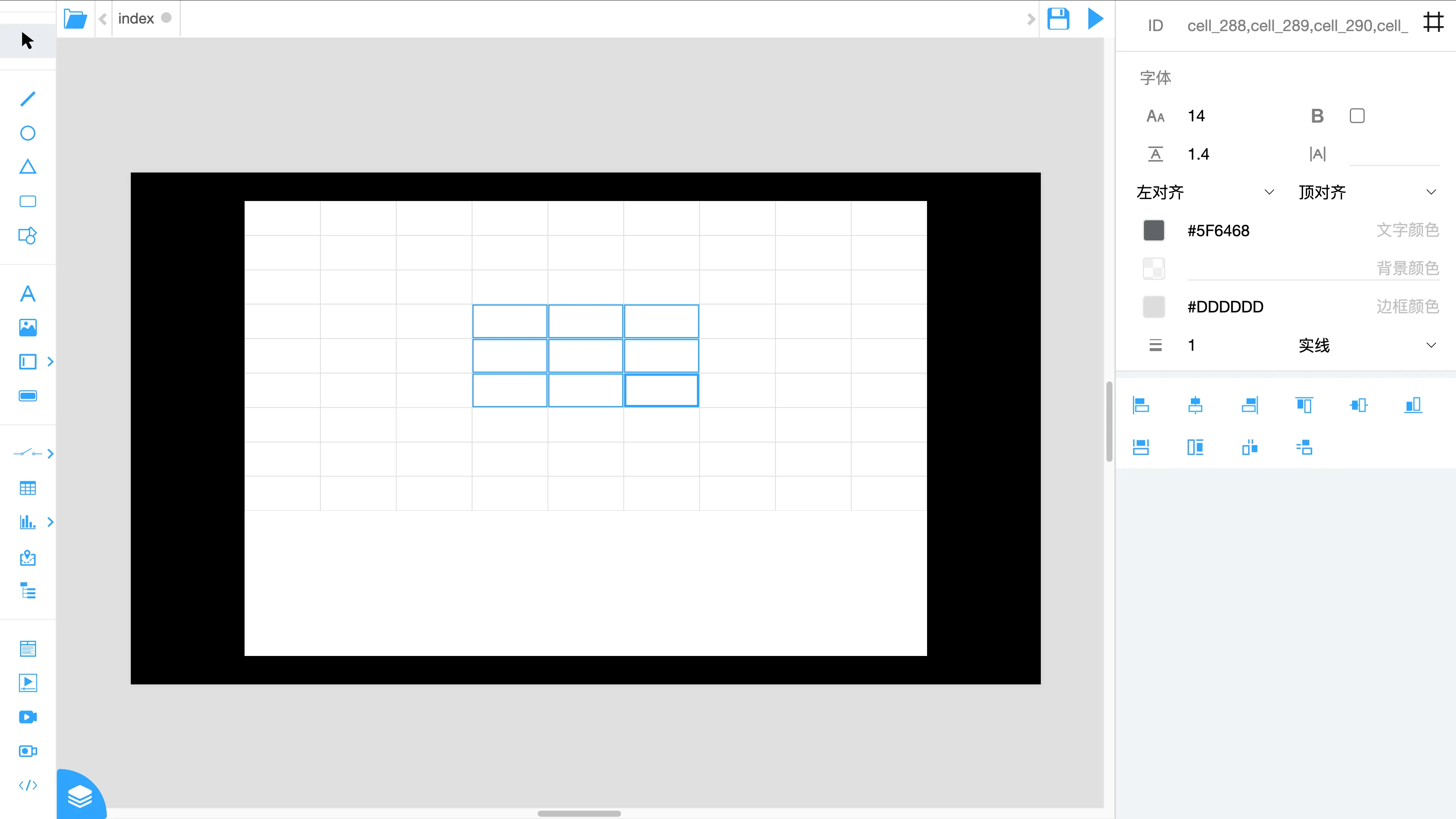 双击 文字、单元格 控件,可以进入文字编辑状态。点击页面其他部分,或者按 【Esc】 键,退出文字编辑状态。